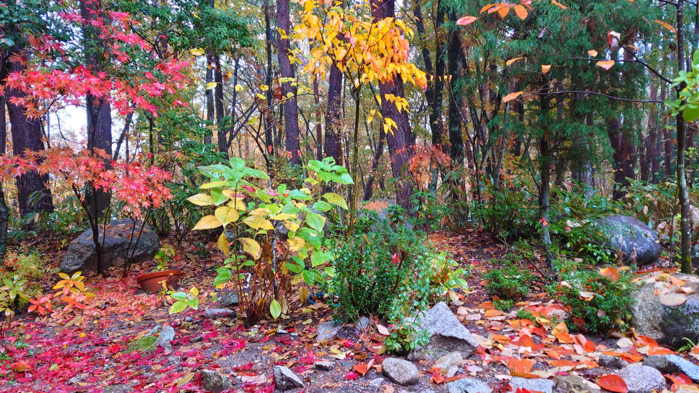 同じ学者村内の家の庭の散りゆく紅葉